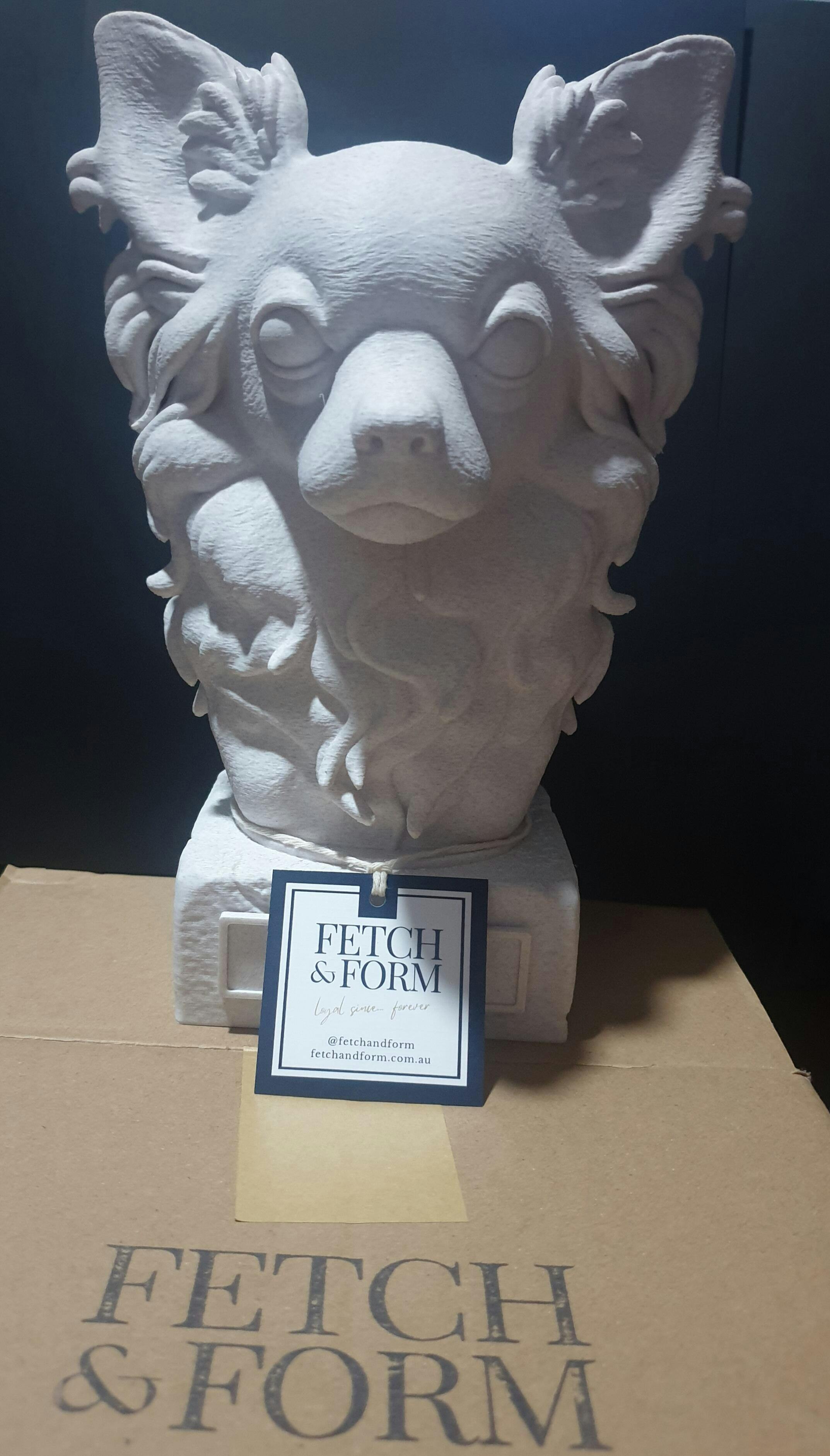 Each bust is digitally sculpted, 3D printed with care, and hand-finished for a refined, character-rich look. Designed for indoor display, these pieces blend artisan craftsmanship with modern technology to honour the personality of every pup.